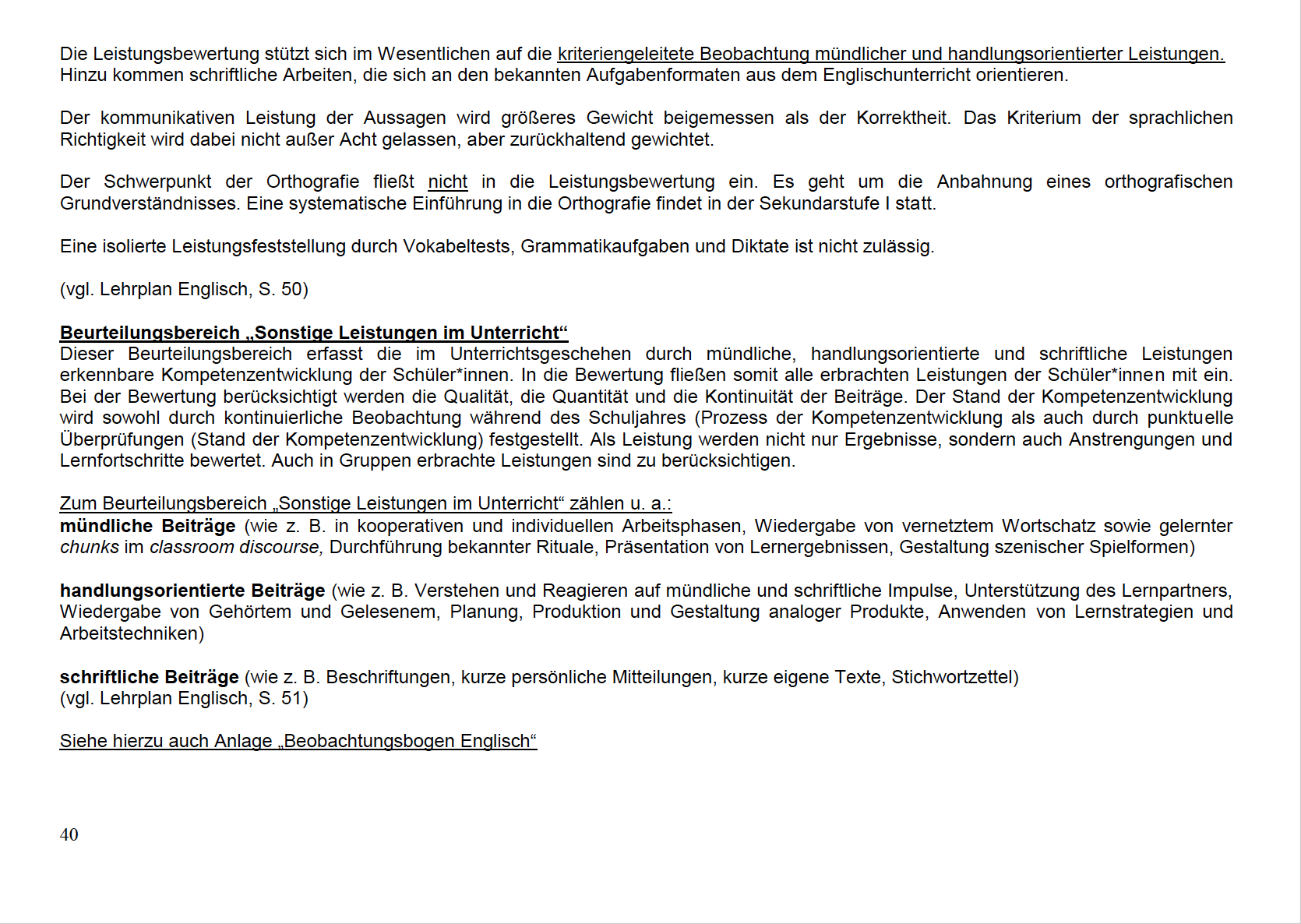 Beobachtungsbogen Englisch